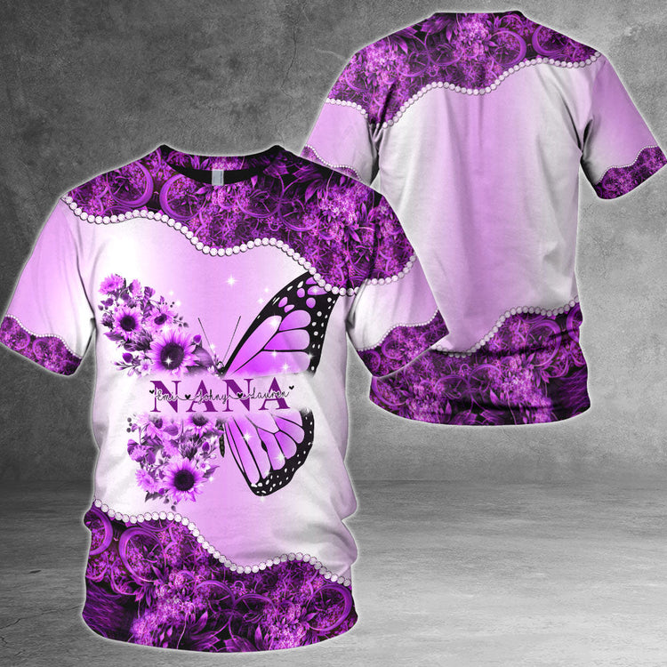 Personalized Nickname & Grandkid's Names 3D All Over Print Shirts Butterfly Sunflower Mom