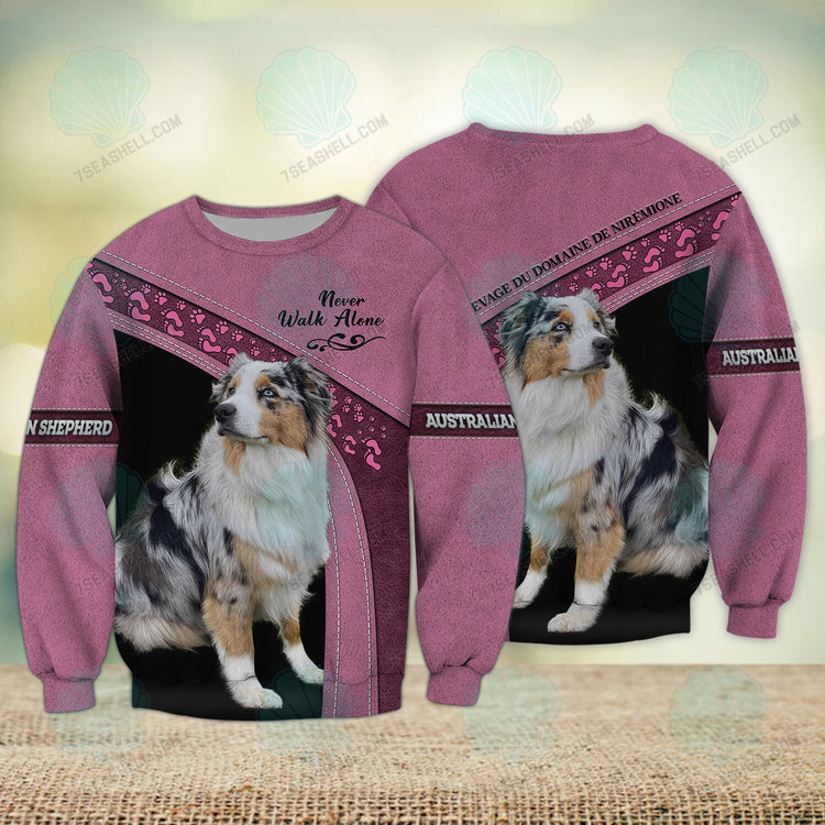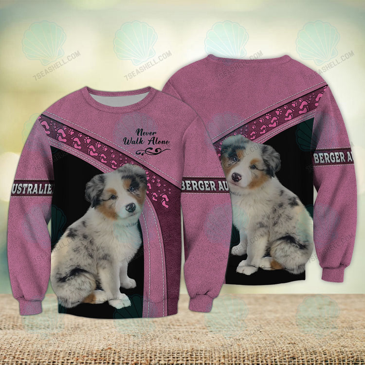 Home 3D Sweatshirt Australian Shepherd Love Pink Never Walk Alone 3D Full Print Sweatshirt Shirts