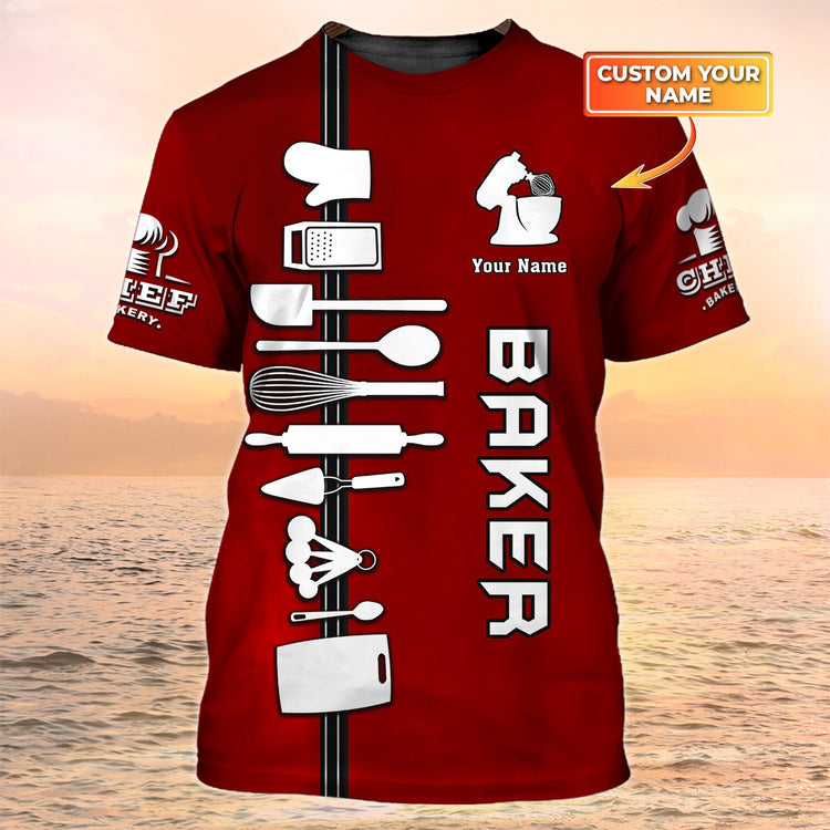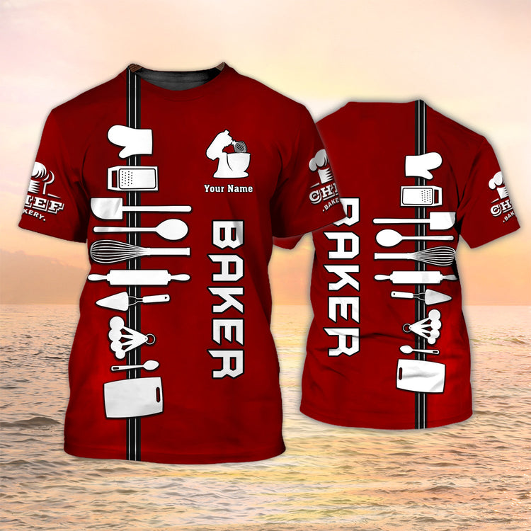 Custom Baker T Shirt Bakery Chef Uniform Red