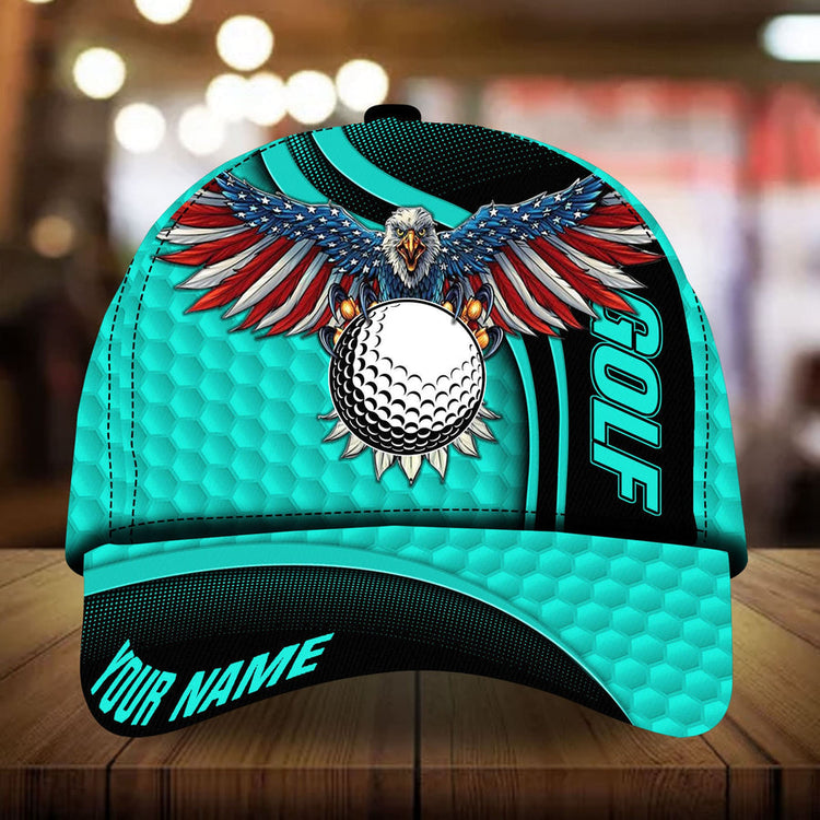 Home Baseball Cap Golf Premium Multicolor Option Eagle And Golf Personalized Name All Over Printed Cap