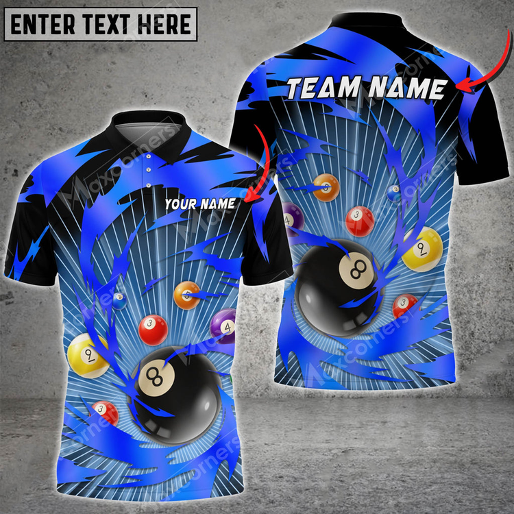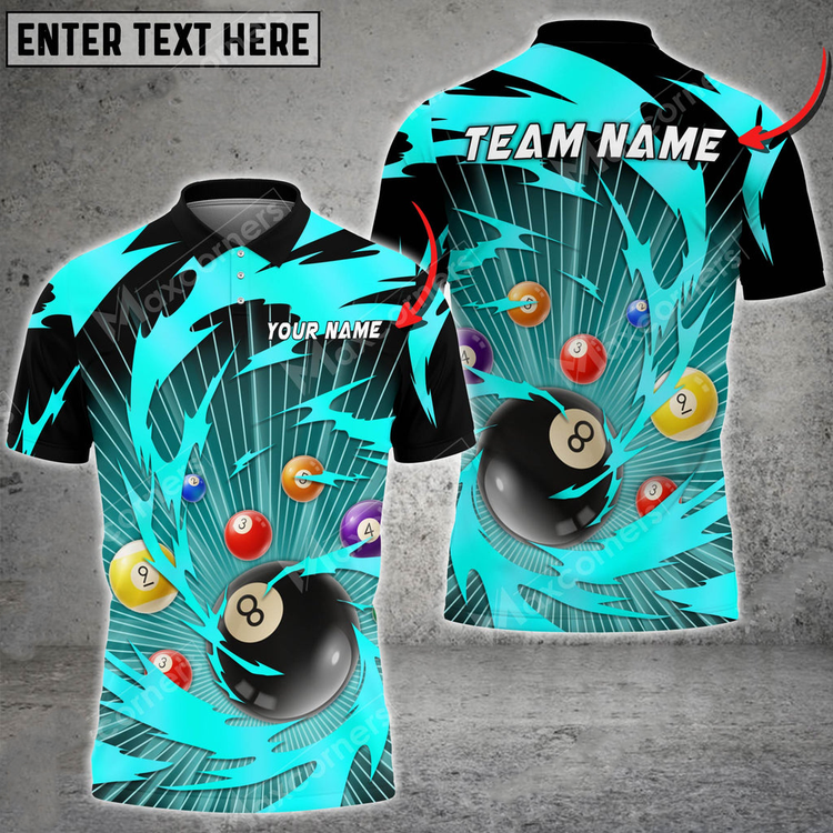 Billiards Tornado Throw Multicolor Options Personalized Name 3D Polo Shirt
