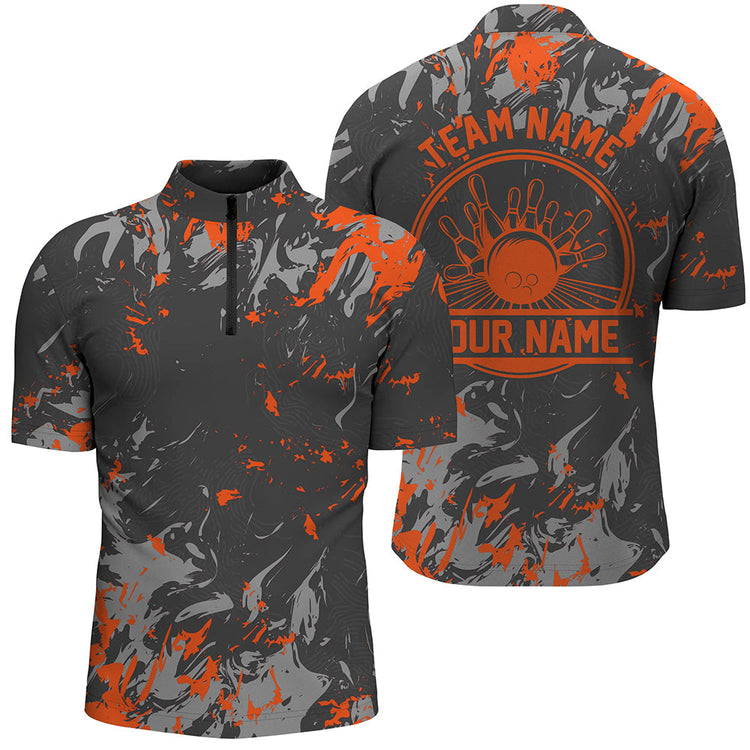 Personalized Bowling Quarter Zip Shirts Men, Multi Color Bowling Balls And Pins Bowling Team Shirts