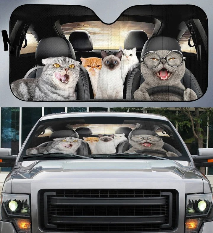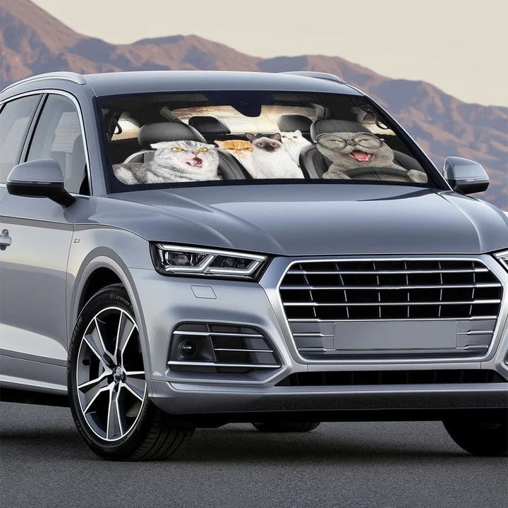 Cute Cats Car Sunshade, Funny Cat Car Sun Shade Windshield