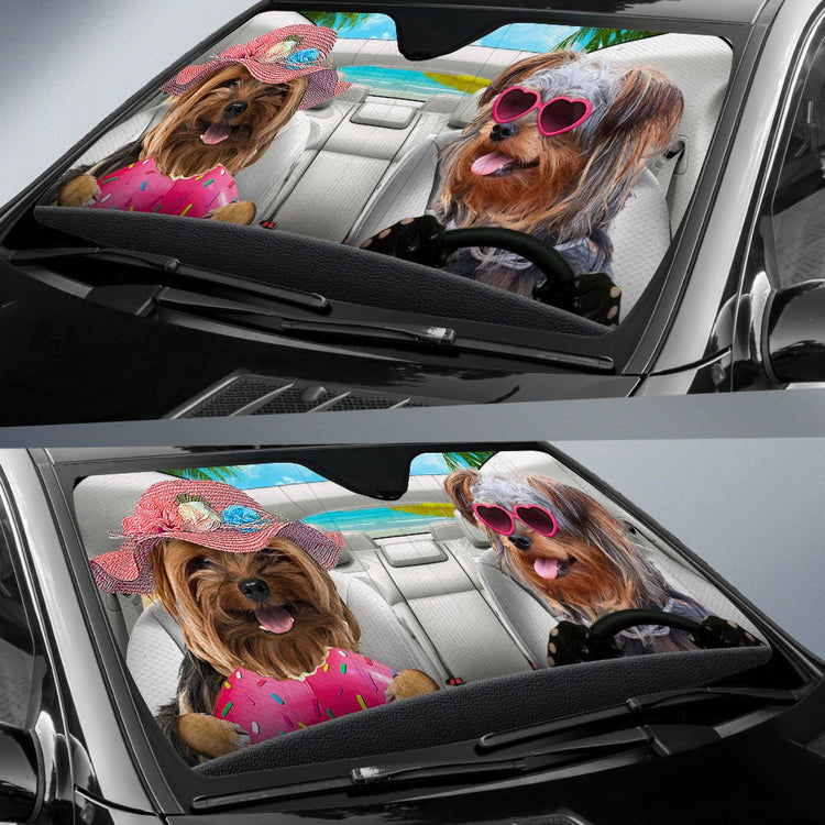 Yorkie-Poo-Dog Summer Vacation Couple Car Sun Shade Cover Auto Windshield
