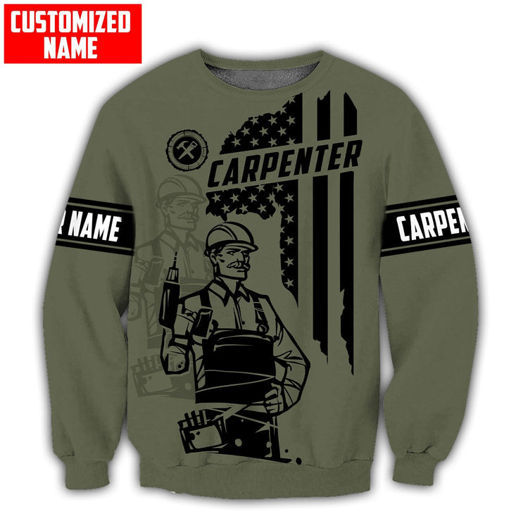 Customized Name Carpenter USA Flag Pattern 3D Full Printed Sweatshirt Hoodie, Christmas Gift for Carpenter