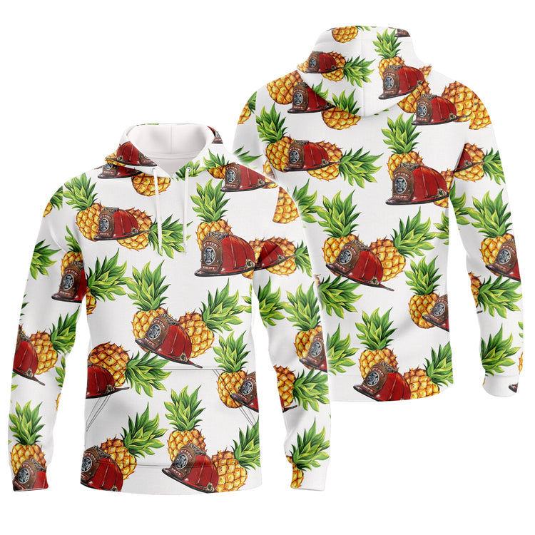 Firefighter Pineapple Hat Pattern 3D Sweatshirt Hoodie Bomber, Christmas Firefighter Shirt