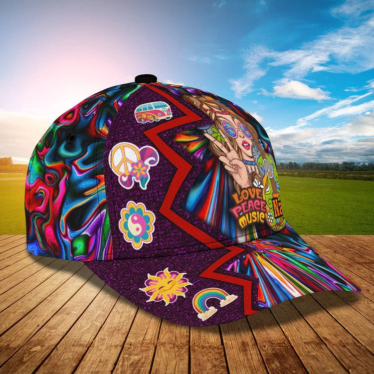Home Hippie Customized Guitar Hippie Girl Cap, Love Peace Music Hippie Hat for Women, Girlfriend