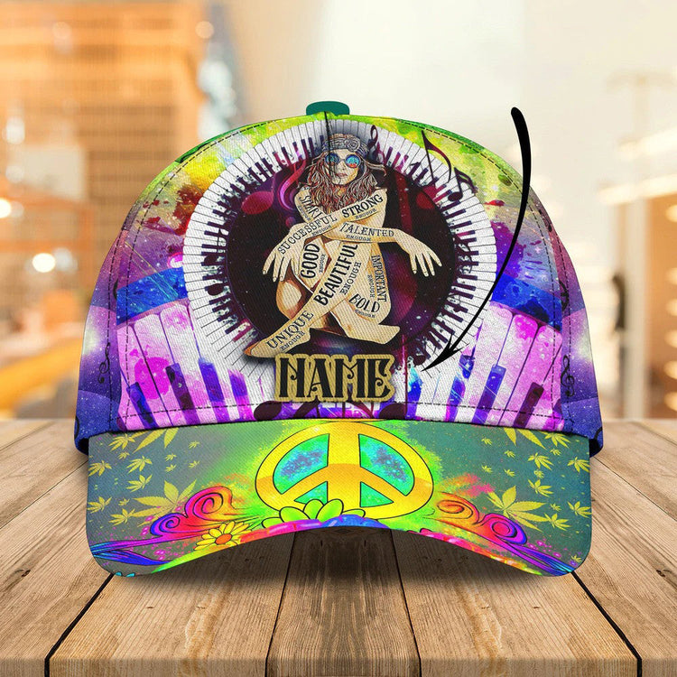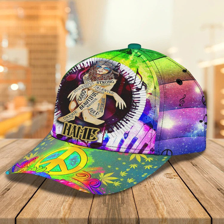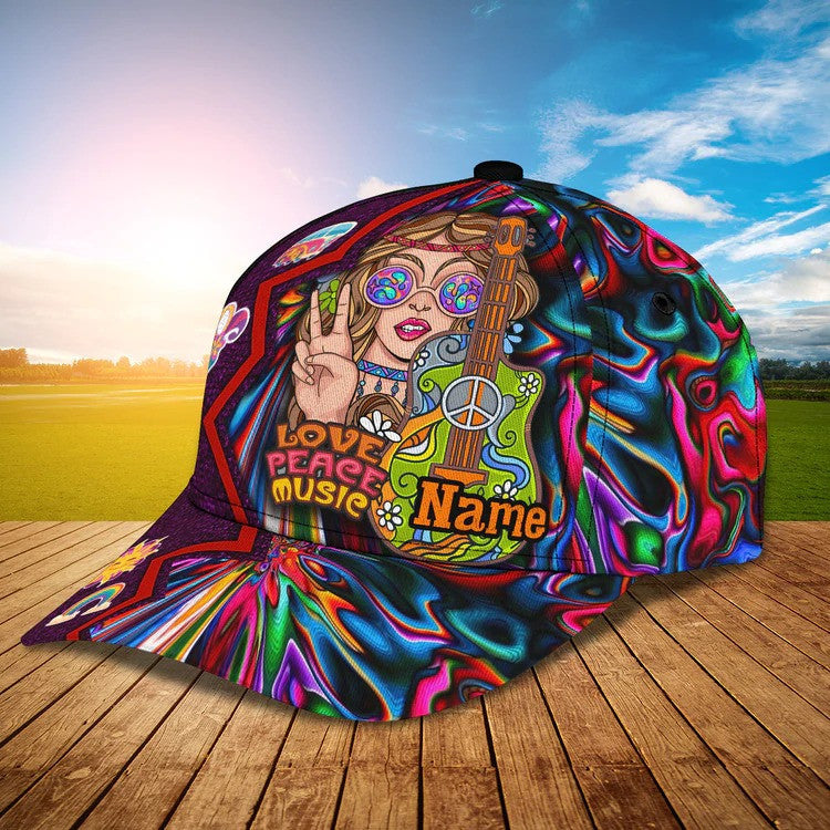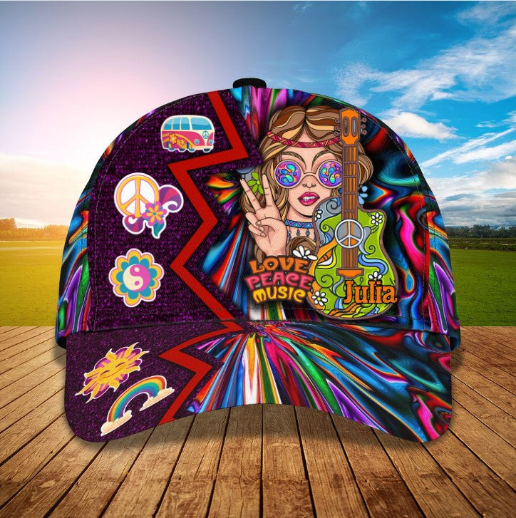 Customized Guitar Hippie Girl Cap, Love Peace Music Hippie Hat for Women, Girlfriend