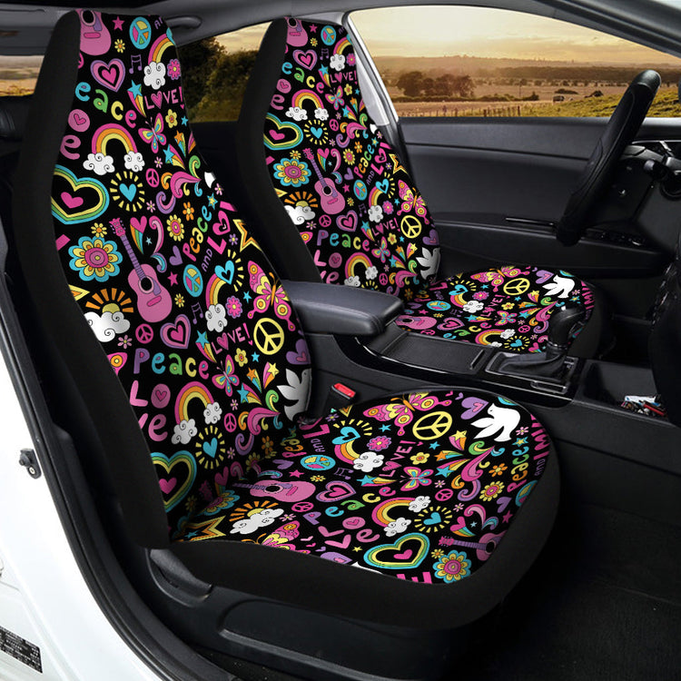 Hippie Peace Sign And Love Pattern Print Universal Fit Car Seat Covers
