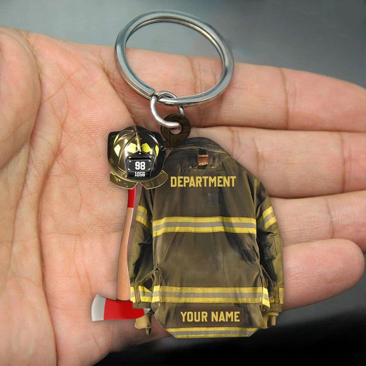 Personalized Firefighter Armor Shaped Flat Acrylic Keychain, Firefighter Outfit Uniform Helmet Keychain