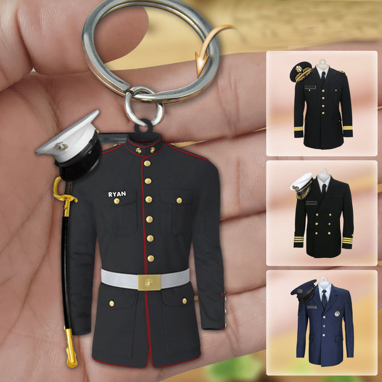 Personalized Military Uniform Keychain, Custom Name Military Keychain