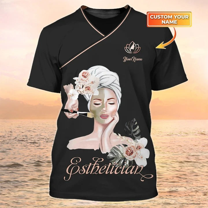 Custom Name Skincare Shirt Esthetician Custom Tshirt Shirts Beauty Spa Uniform Esthetician Apparel