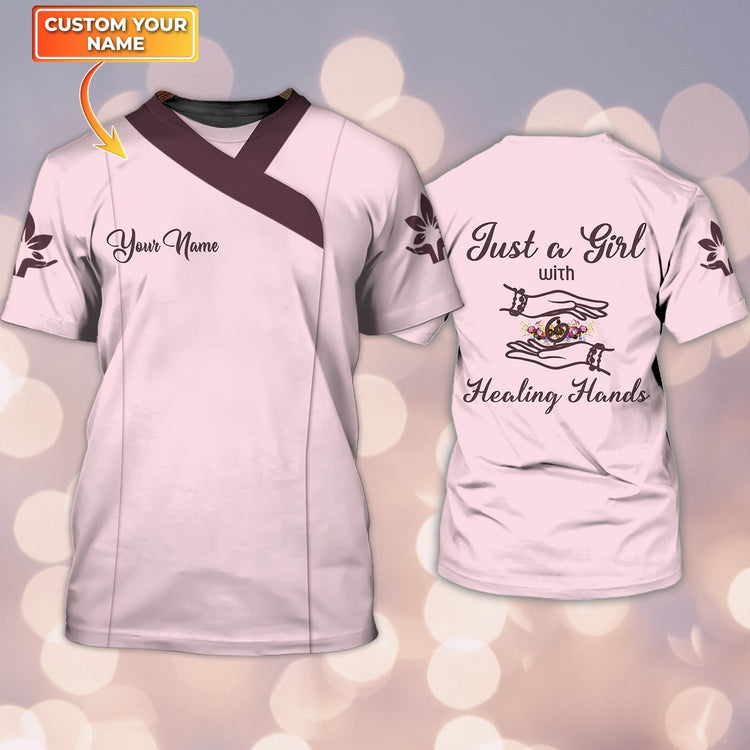 Custom 3D T Shirt For Massage Therapist, Massage Therapist Just A Girl With Healing Hands