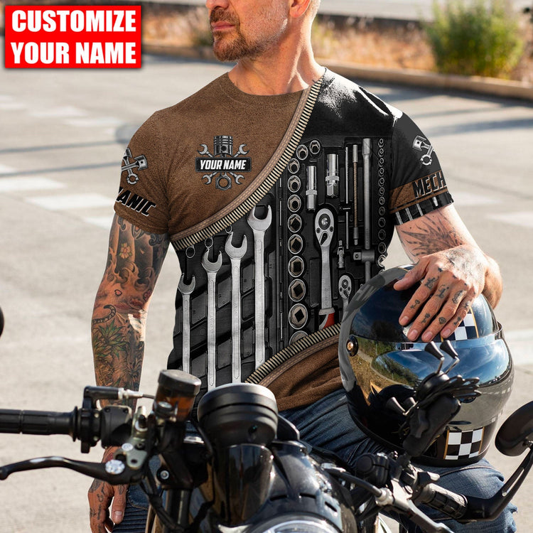 Personalized Name Mechanic Unisex Shirts with Leather patten, 3D Mechanic Shirt, Mechanician Shirts