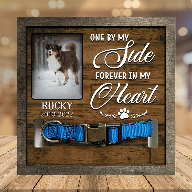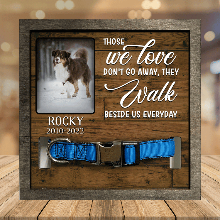 - Pet collar frames show the special moments in life with dogs and cats memorial. Display your best friend's collar together with your favorite photo in memory of loved. Perfect pet collar frame is the unique memory picture frames for your lovely pet. This is also a perfect sympathy gift to send to a friend or family who recently loss of dog or cat.