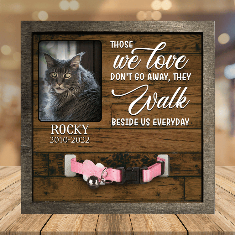 - Pet collar frames show the special moments in life with dogs and cats memorial. Display your best friend's collar together with your favorite photo in memory of loved. Perfect pet collar frame is the unique memory picture frames for your lovely pet. This is also a perfect sympathy gift to send to a friend or family who recently loss of dog or cat.
