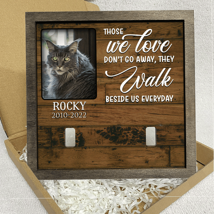 - Losing a pet is never easy. Having a beautiful keepsake to look at every day can help ease that grief a little bit. Customized with your pet's name and a spot for your favorite picture of them. The sign features a space to display their collar.
