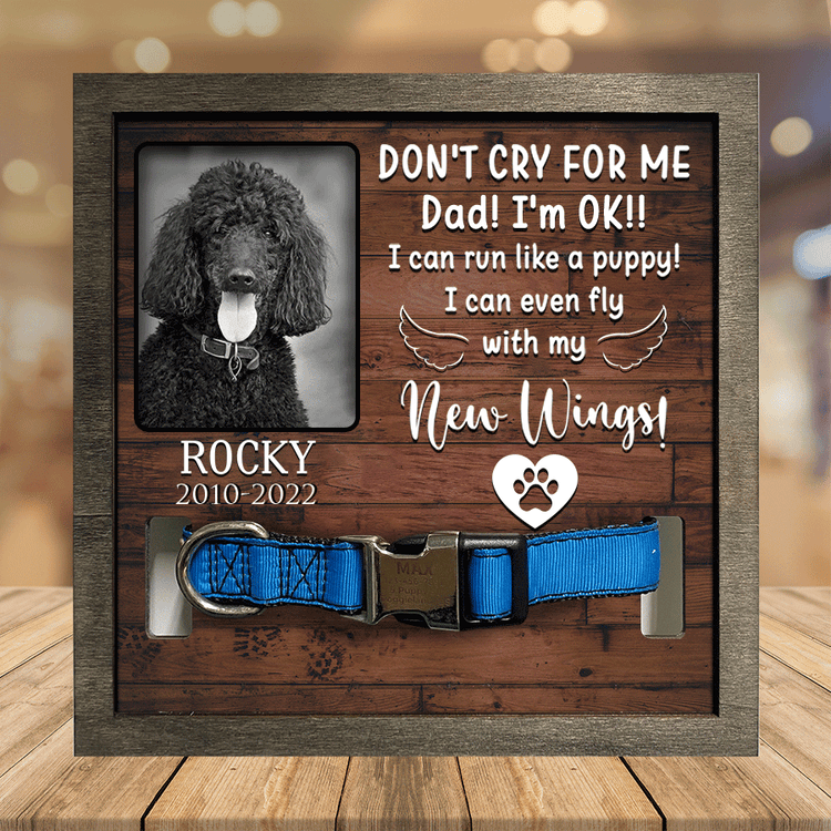 - Pet collar frames show the special moments in life with dogs and cats memorial. Display your best friend's collar together with your favorite photo in memory of loved. Perfect pet collar frame is the unique memory picture frames for your lovely pet. This is also a perfect sympathy gift to send to a friend or family who recently loss of dog or cat.