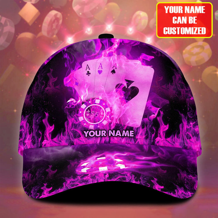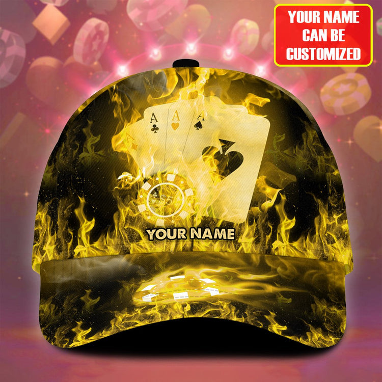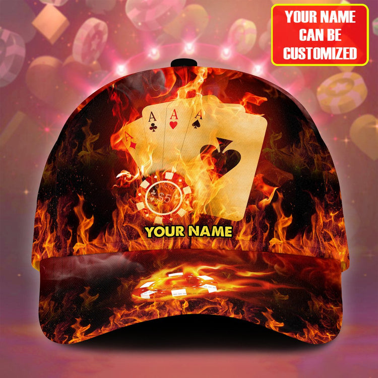Personalized Name Multi Color Fire Poker Classic Cap, Poker On Fire Hat for Men