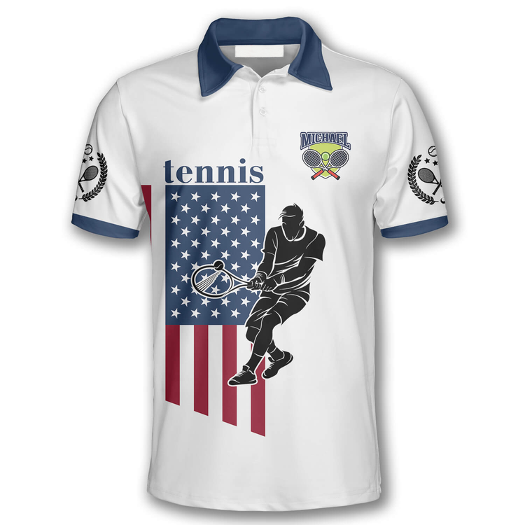 Tennis Player Silhouette American Flag Custom Tennis Shirts for Men