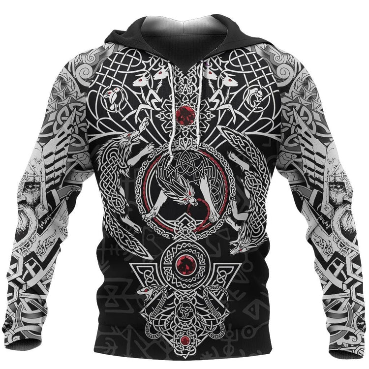 Vikings Fenrir Skoll And Hati Valknut Pull Over Hoodie, Viking Hoodie, Sublimation Viking On Hoodie